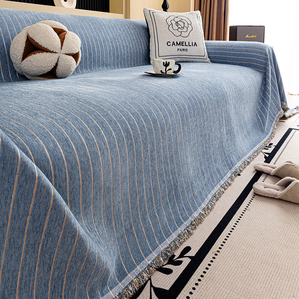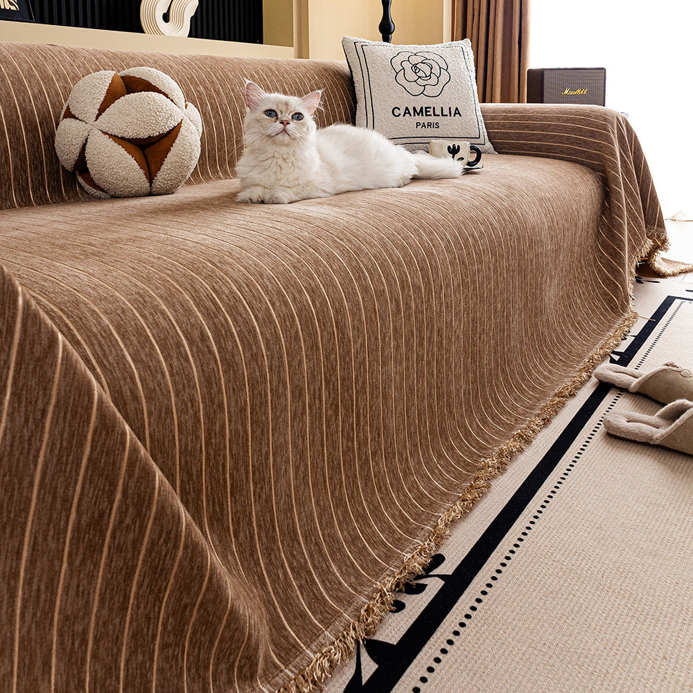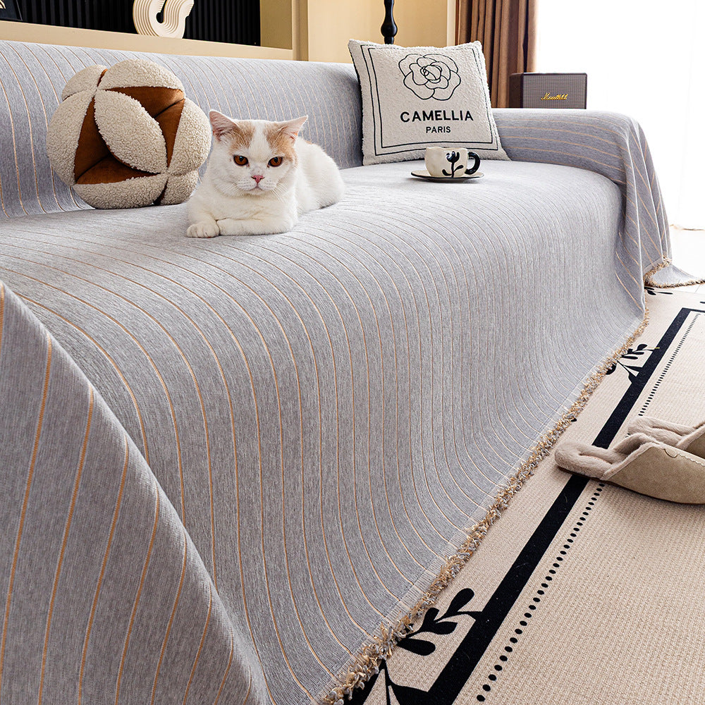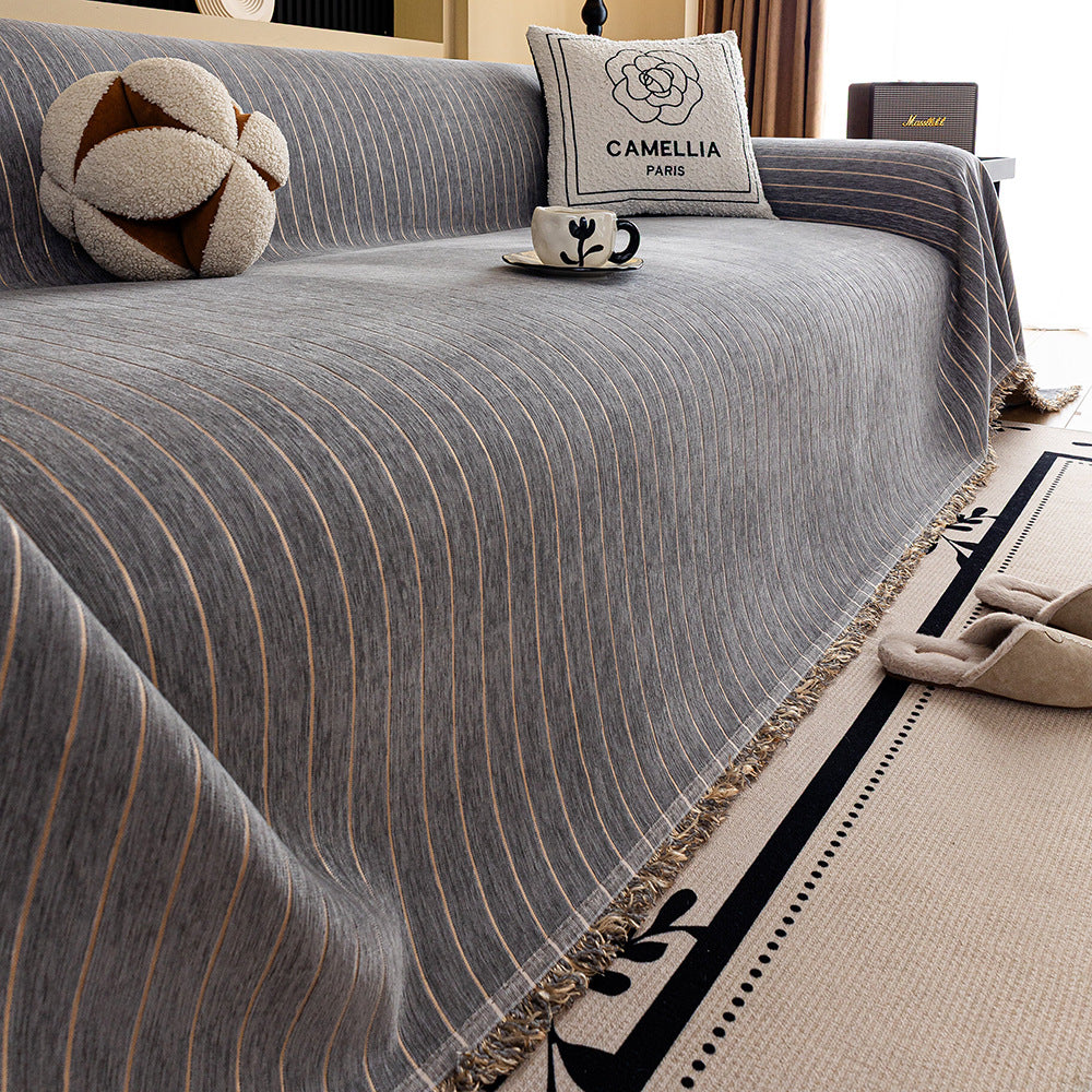 Elevate your sofa with our Golden Stripe Cover—thick chenille blends luxury and practicality!