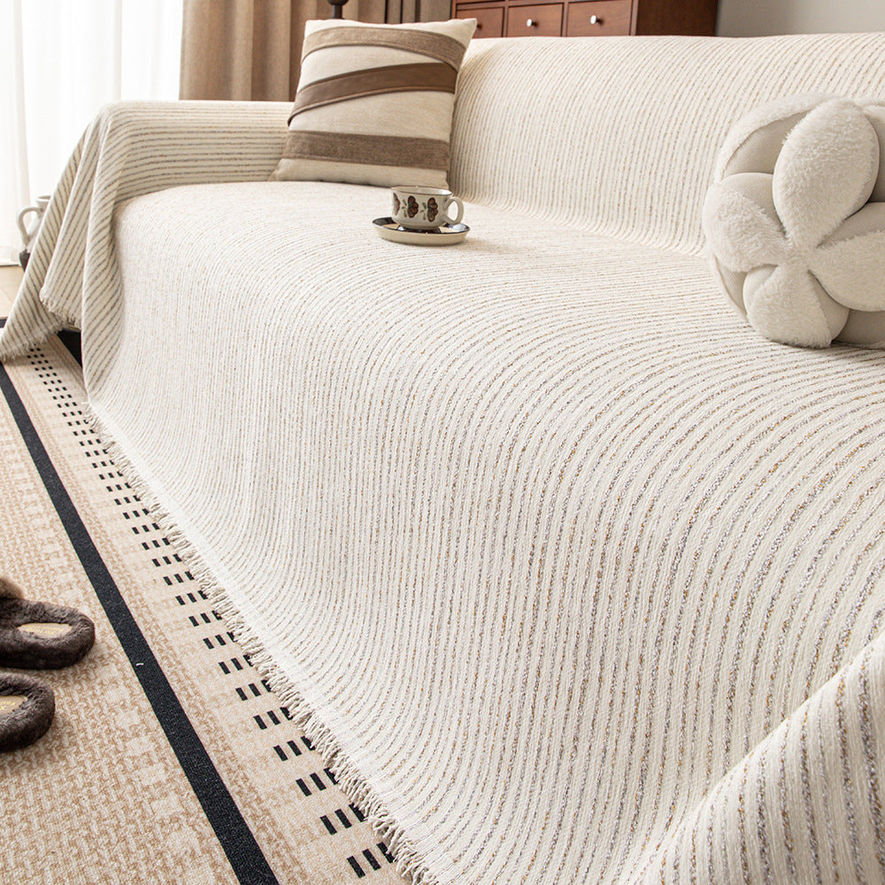 Stripes Chenille Sofa Throw Blanket Couch Cover